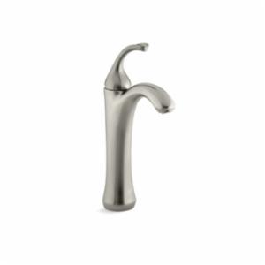 Kohler® Bathroom Sink Faucet, Forte®, 1.2 gpm, 5-3/8 in Spout Reach, 7-7/8 in Spout Height, Sculpted Lever, 1 Handles, Pop-Up Drain, 1 Faucet Holes, 3/8 in, Compression, Function: Traditional, 2-1/2 in Maximum Deck Thickness, Deck Mount, Ceramic Disc Valve/Cartridge, 12-3/8 in H, Solid Brass, Vibrant® Brushed Nickel